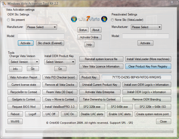 Nouveaux outils pour toutes les fenêtres actives et plus Vista Coups Secs. Un outil pour vous aider à activer Vista OEM (ou après le boot, vous pouvez choisir) et bien plus encore ..